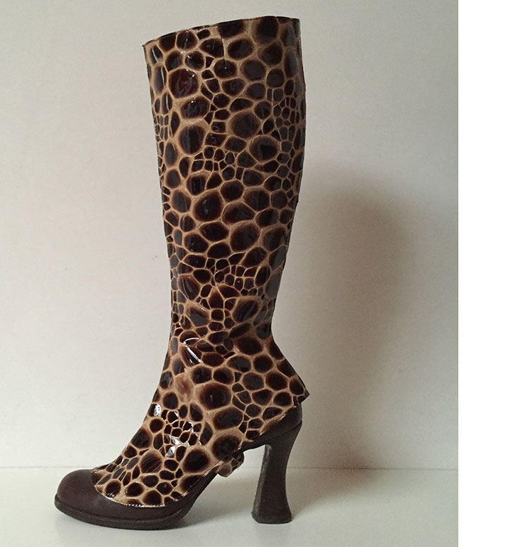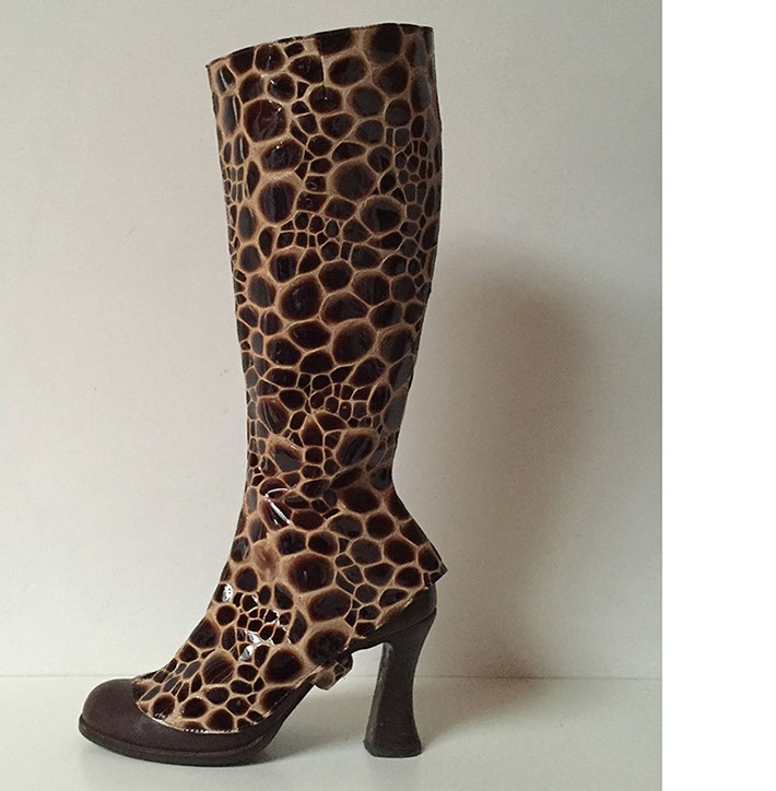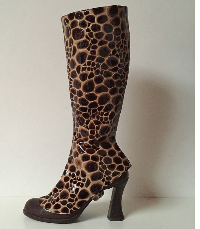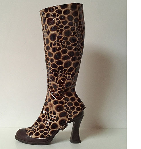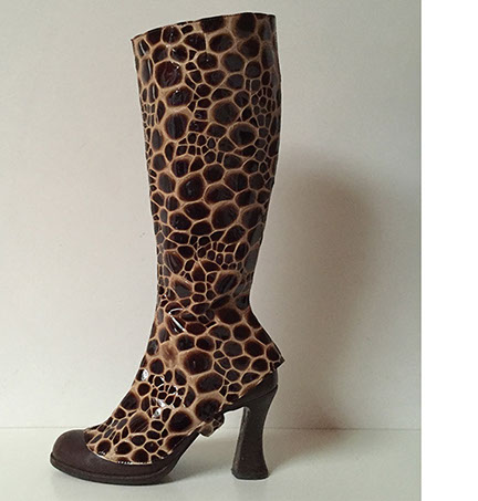 Handmade overshoe/gaiter “Pump-Up” in printed leather, lined with calf leather.